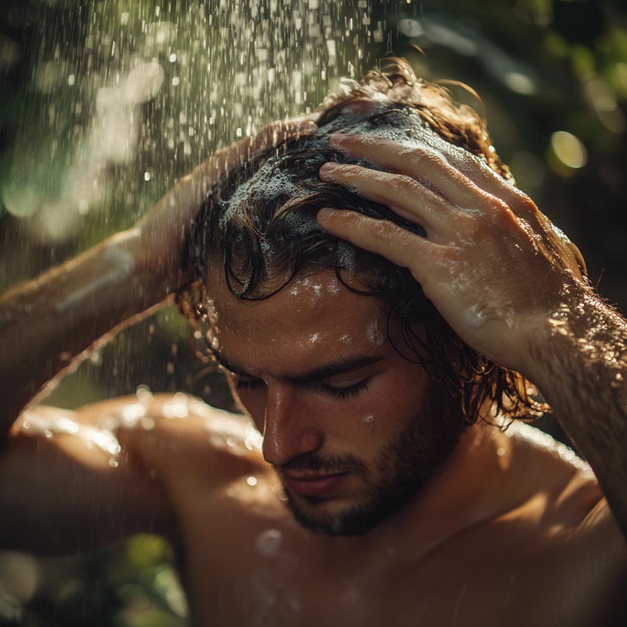 Eine handverlesene Mischung aus südamerikanischen Kräuterextrakten und natürlichen Ölen, die darauf ausgelegt sind, Ihre Kopfhaut zu regenerieren und zu beleben:
